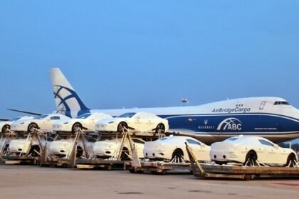 This is forty Maseratis being unloaded at an airport. Not rented, not…