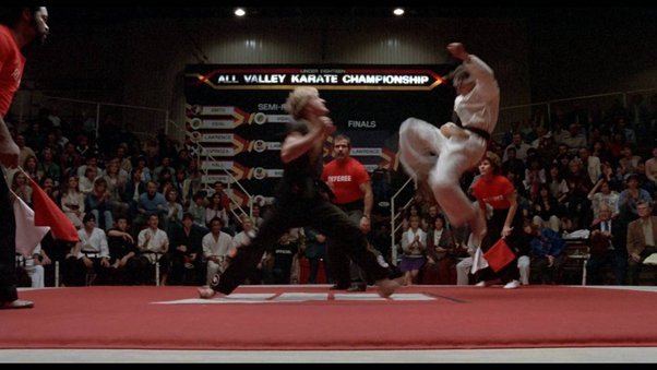 Because, despite Johnny’s claim, which we heard thirty years later in Daniel’s car dealership, Daniel’s kick to Johnny’s head wasn’t illegal.